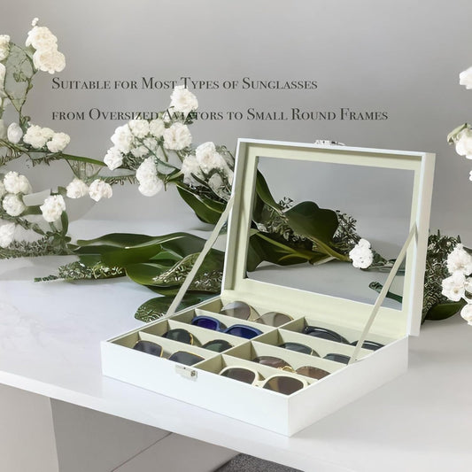 8-Slots Eyeglass Sunglass Glasses Organizer Collector - Faux Leather Storage Case Box for Men Women'S Glasses, White